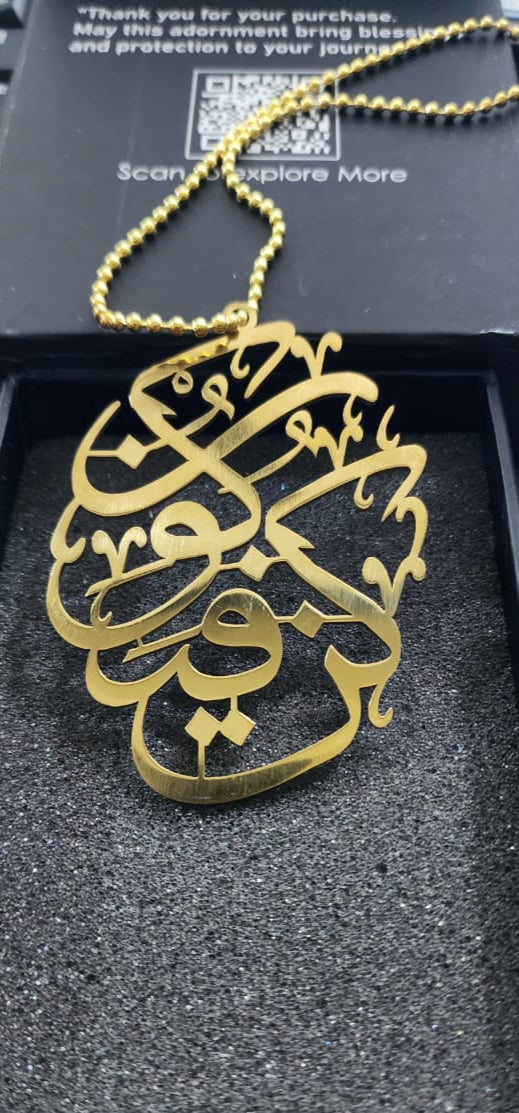 Introducing the Kun Faya Kun car hanging, meticulously crafted with premium metal, now offered exclusively at Asia Store. Elevate your vehicle with this divine accessory, designed to bless your journeys with its spiritual significance. Experience elegance and reverence combined in this unique car adornment.